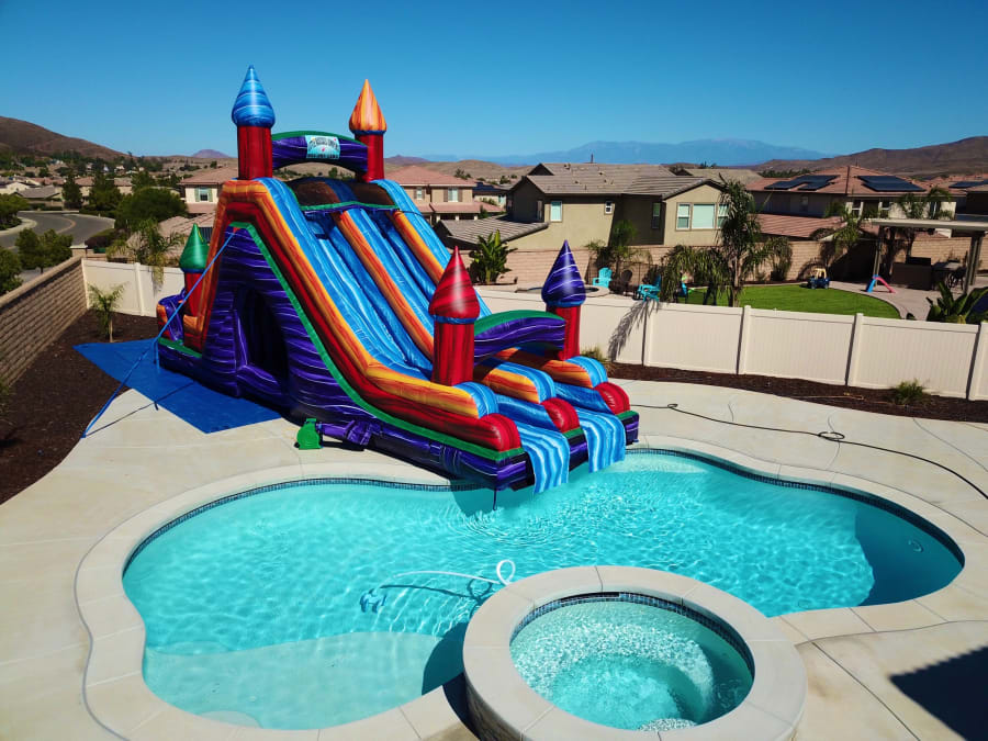 Prepare for an electrifying aquatic adventure with our colossal Electric Rush Giant Pool Side Water Slide. As our largest pool slide offering, this thrilling attraction is designed to elevate the excitement to new heights. With its rear load and dual lane design, you can challenge your friends or family members to a race down the slide and experience the ultimate adrenaline rush. This slide is the epitome of "go big or go home" as it delivers an unforgettable experience that will leave everyone breathless. To accommodate this impressive structure, a minimum clearance of 5 feet in width is required at the entrance gate. Don't miss out on the opportunity to make a splash and create lasting memories with the Electric Rush Giant Pool Side Water Slide. Get ready for an unforgettable aquatic escapade that will have everyone buzzing with excitement.