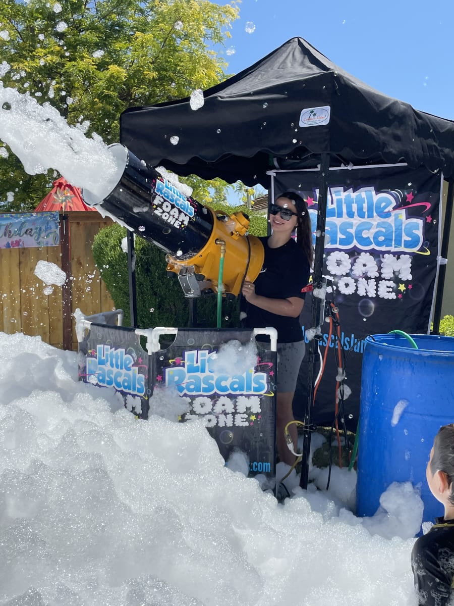 Get ready for the ultimate party experience with our Foam Party Package. Foam parties are a guaranteed hit for guests of all ages, whether you're hosting a backyard gathering for your little ones or a lively pool party at a club or resort. It's time to put on your bathing suits, grab your beach balls, and water balloons because the fun is about to begin! Our Foam Party Package includes everything you need to make your event a blast. For just $649, you'll get a 1-hour event filled with excitement and laughter. We provide a skilled attendant who will ensure the smooth operation of the party, making sure everyone has a fantastic time. The package also includes a high-quality commercial HD Pro Stacker Foam Cannon, which will create a thick layer of foam for everyone to enjoy. To keep the party vibe going, we provide a PA speaker that will keep the music pumping and the crowd dancing. But that's not all! We also include a 25x25 inflatable foam pit, giving your guests plenty of space to frolic and play in the foam. If you want to extend the fun, you can upgrade to a 1.5-hour event for just $749. Get ready to make unforgettable memories with our Foam Party Package. It's time to dive into the foam and let the good times roll!