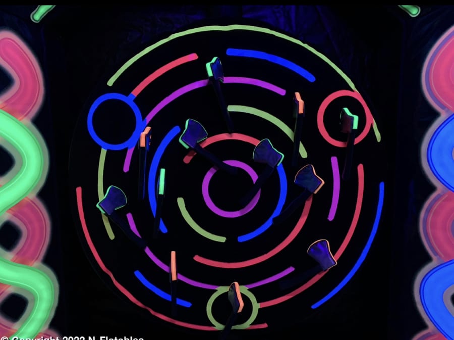 Don't miss out on the opportunity to add a unique and thrilling activity to your next event. Book our Black Light Neon Axe Game today and let the ax-throwing fun begin!