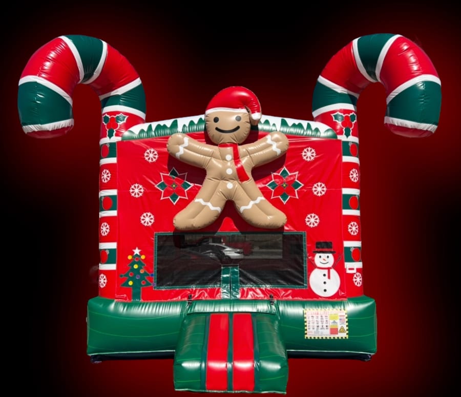 Party Rental 13x13 Gingerbread Bounce House in Riverside ca, Corona ca, Anaheim hills, and surrounding areas offers a vibrant, holiday-themed play space that delights kids and eases party planning. This gingerbread bounce house measures 13’x13’. It’s perfect for Christmas events, school parties, corporate family days, and backyard celebrations. Reserve a Christmas bounce house that looks great and plays safe.