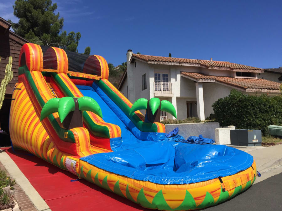 Prepare to make a splash as you slip, slide, and dive into the refreshing pool at the bottom of the slide. Whether you're a child or a child at heart, this water slide offers all-day entertainment that will keep everyone delighted and captivated. Imagine the joy on the faces of your guests as they cool off under the radiant sun and indulge in the thrill of sliding down this magnificent tropical-themed attraction. With dimensions of 30 x 13 x 14 inches, the Tropical Water Slide provides ample space for everyone to join in the excitement